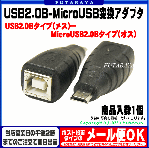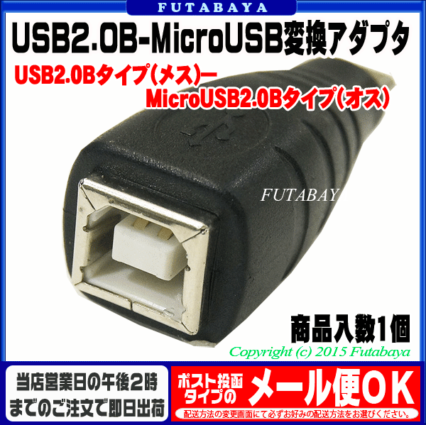 USB2.0Bタイプ端子のケーブルをスマートフォンやタブレット充電用のMicroUSB端子に変換 USB2.0Bタイプ(オス)端子が付いたケーブルが余っていたり抜差しが難しい場合など簡単にMicroUSB(オス)端子へ変更する事が出来るのでスマートフォンやタブレットPCの充電ケーブルへと変身いたします。